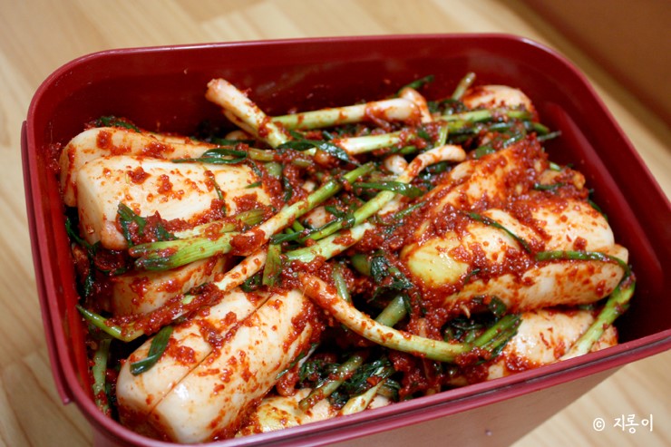 김치냉장고에 꼭 한 통 넣어두고 싶은 대표 김치이기도 하죠.