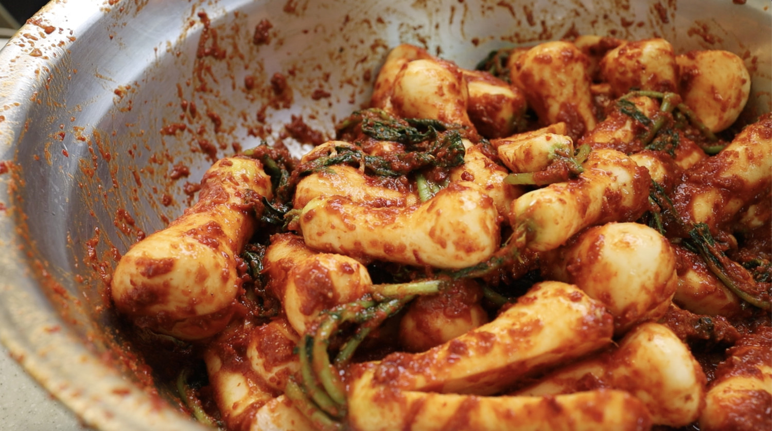 정성스럽게 절이고, 고운 색의 양념을 입힌 알타리김치는