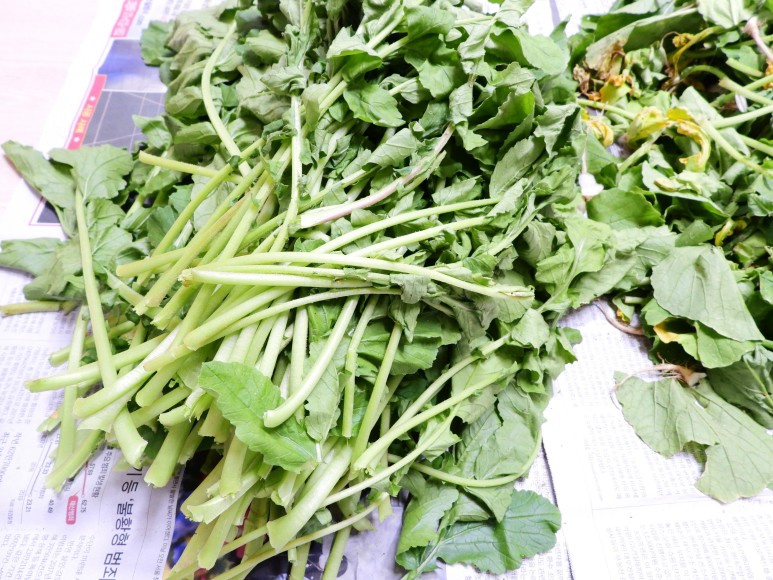 - 알타리무의 시든 잎, 잔털을 제거합니다.