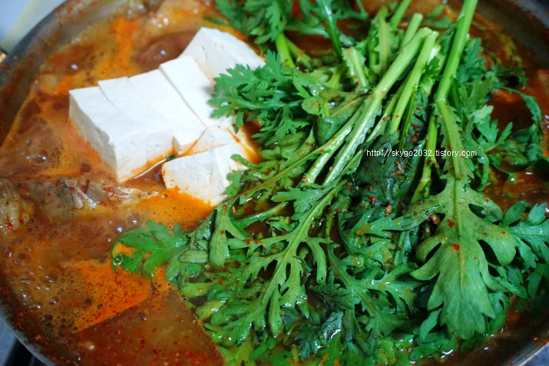 - 대파, 고추, 쑥갓 넣고 불 끄기